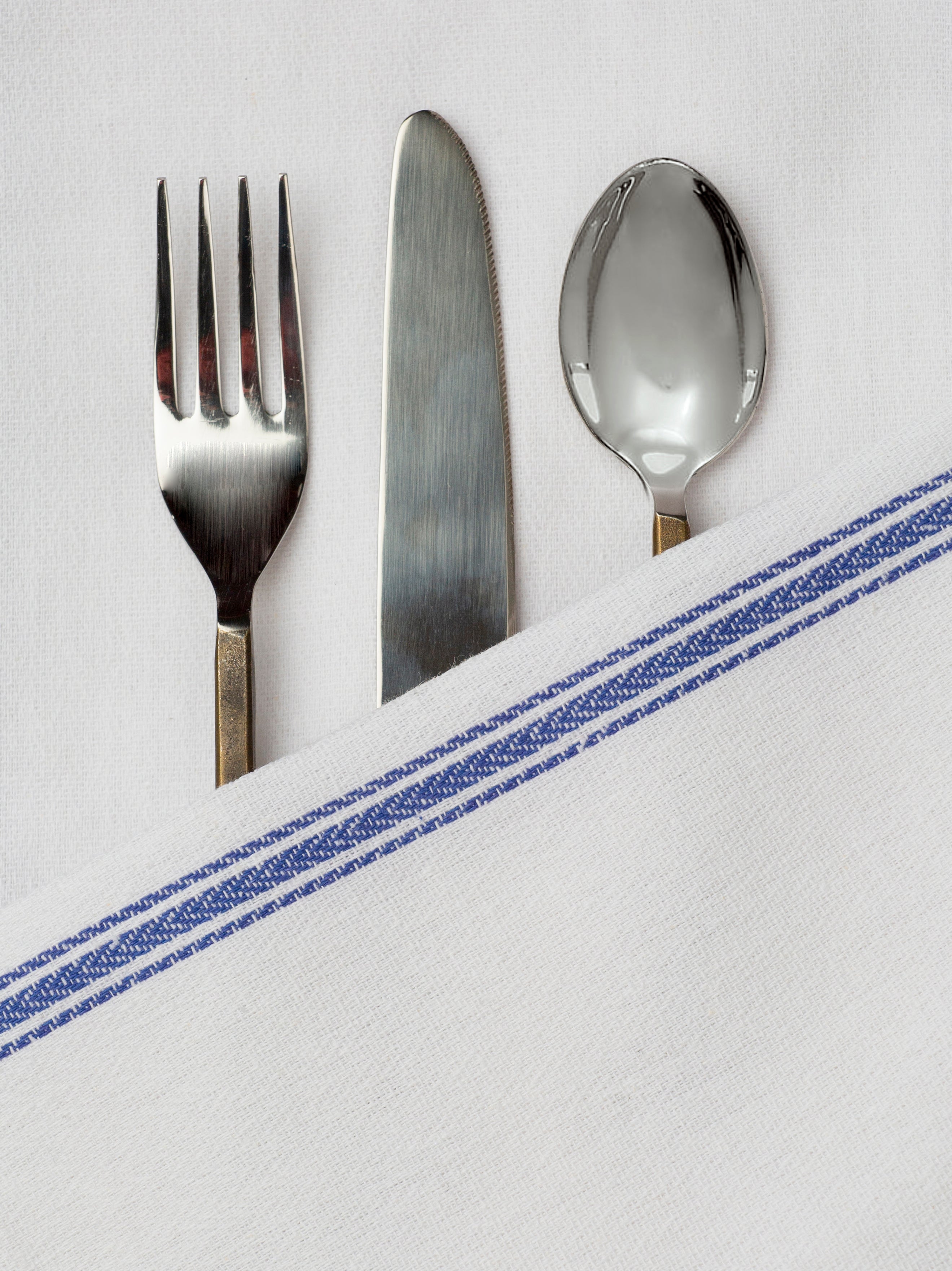 Set of 12 Herringbone Kitchen Towels - Blue Stripe