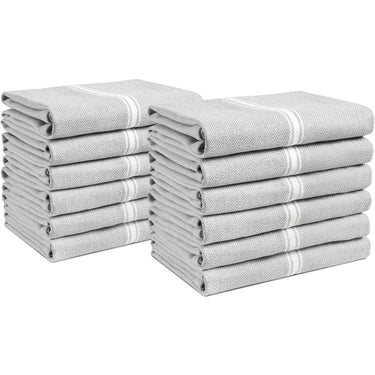 Set of 12 Herringbone Kitchen Towels - Grey