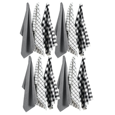 Set of 12 Multiweave Kitchen Towels - Black