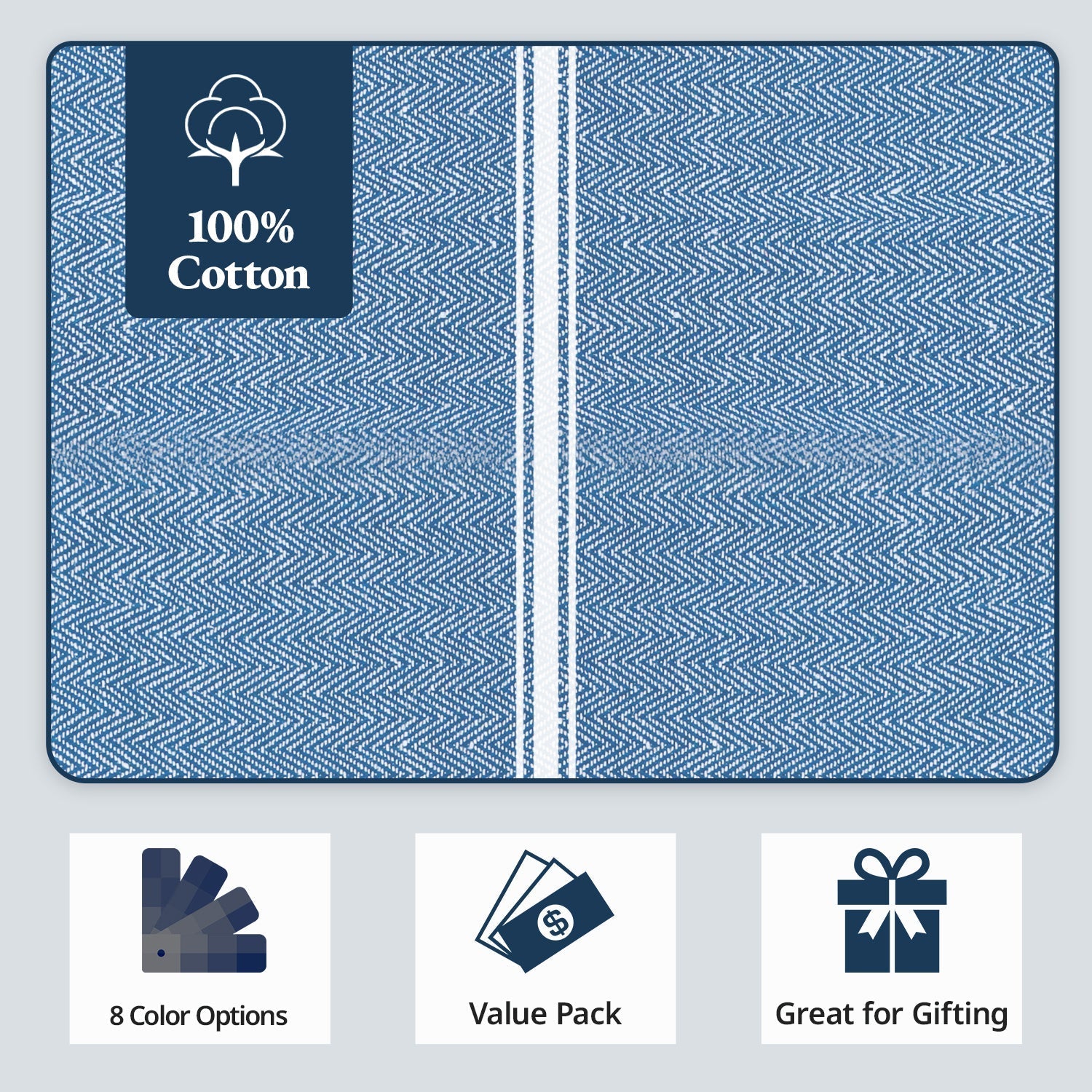 Set of 6 Herringbone Kitchen Towels - Indigo