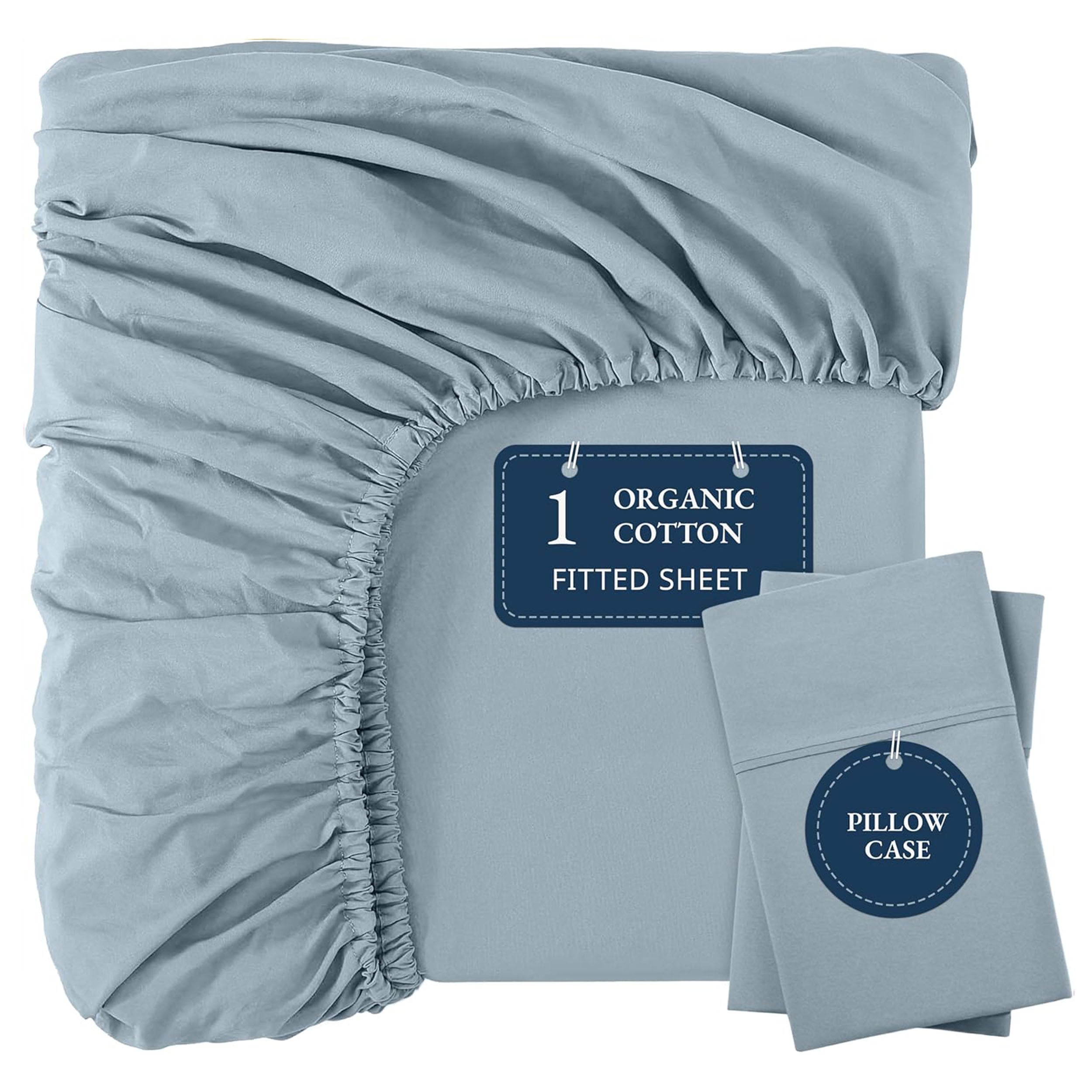 100% Organic Washed Cotton Fitted Sheet Set - French Blue