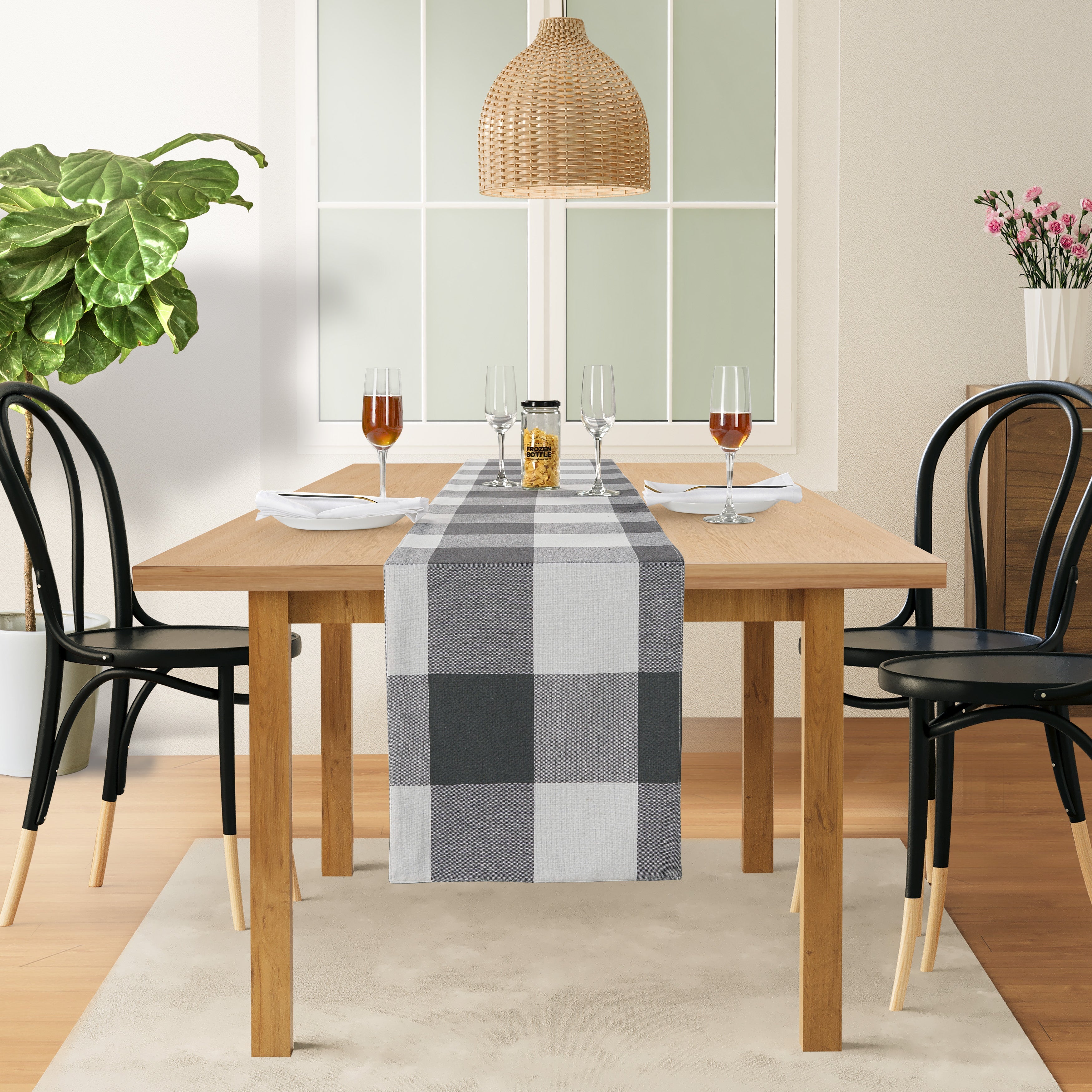 Elevate your dining experience with the Lane Linen Table Runner in Grey Check- a timeless and stylish addition to any table setting. Designed to bring effortless charm and everyday practicality, this versatile piece adds style and texture to your dining space, whether you're hosting guests or enjoying casual meals at home.