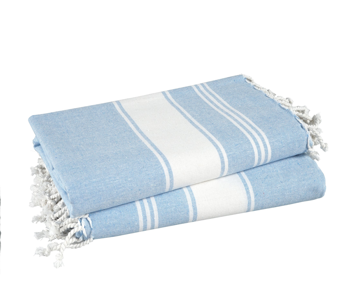 Set of 2 Chambray Turkish Beach Towels - Sky Blue